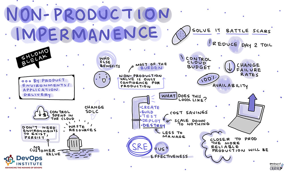 According to DevOps Institute Ambassador Shlomo Bielak, “The best way to remove brittleness is to change the Software Development Life Cycle (SDLC) to involve a stage of destruction.” During his session, “Non-Production Impermanence,” he presented the idea that to reflect true resilience and remove brittleness of applications and platforms together, you must change the SDLC by adding a new state to non-production ‒ destruction.