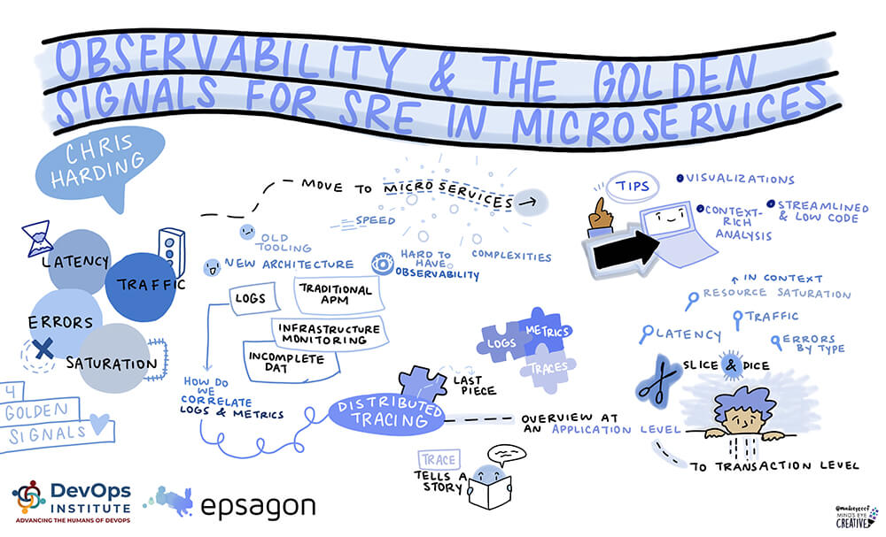 Finally, Chris Harding of Epsagon explained the importance of observability in SRE during his session, “Observability and the Golden Signals for SRE in Microservices.” He stressed that “it becomes very difficult when you have this large amount of services to have true observability into what’s going on.” He presented that “distributed tracking is the last piece of the puzzle” and showed how you can leverage distributed tracing and microservices to achieve true observability within these complex architectures.