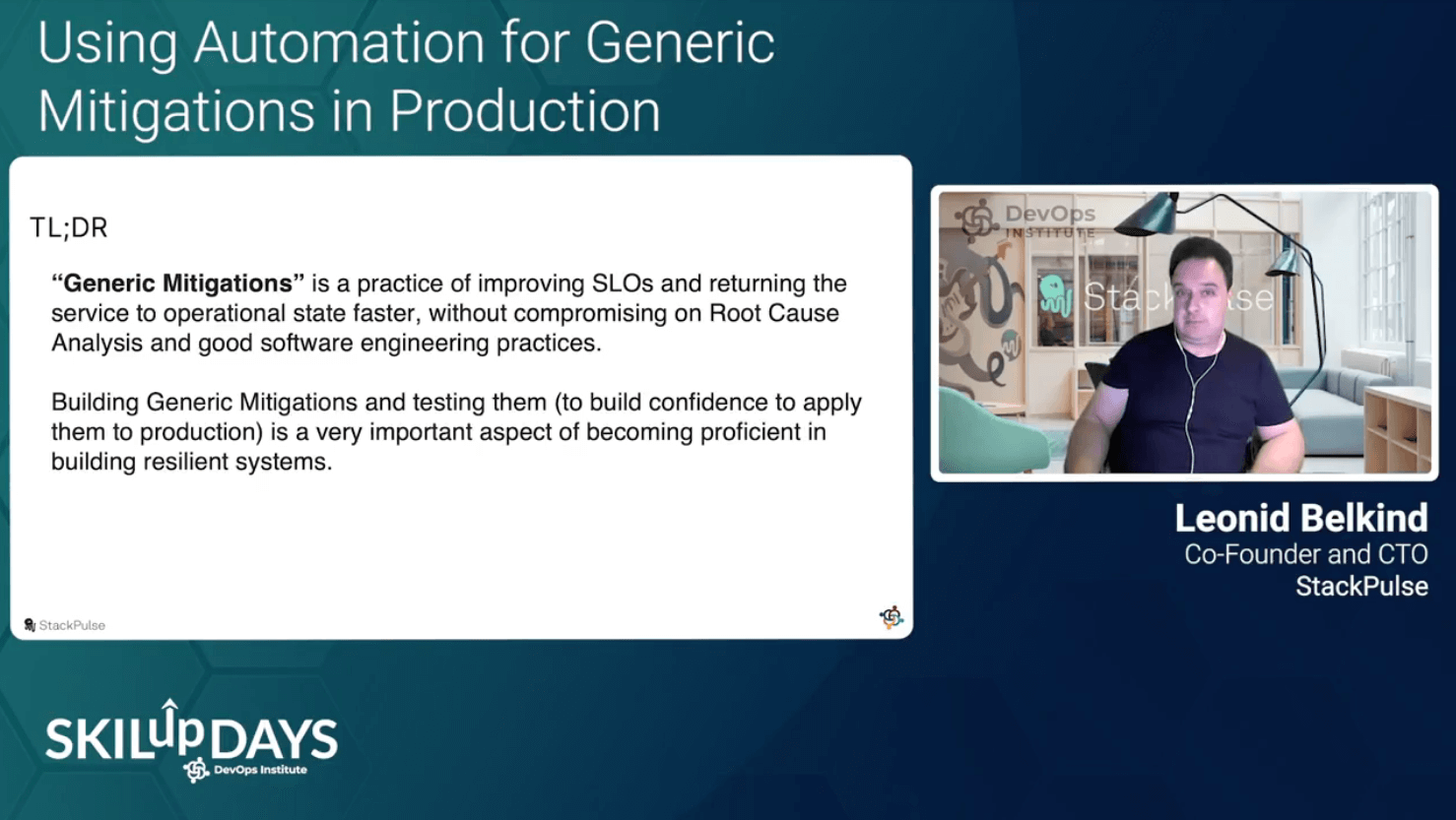 During his session, “Using Automation for Generic Mitigations in Production,” Leonid Belkind of StackPulse gave tangible advice to help SREs, DevOps and Software Engineers in charge of production service environments be ready for various unexpected events and to maintain their service level objectives (SLOs). He stressed that “well-defined, pre-rehearsed and deterministic processes are a must to ensure efficient handling of incidents.”