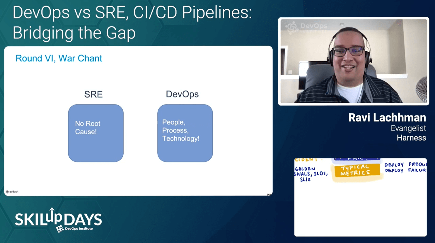 Understanding how SRE fits into other disciplines was another area of focus that emerged during SKILup Day. During his session, “DevOps vs SRE, CI/CD Pipelines Bridging the Gap,” Ravi Lachhman of Harness focused on the conduit between the two teams – a CI/CD pipeline. He also explored the different roles and responsibilities of each and how your CI/CD pipelines can be used in both times of joy and incidents.