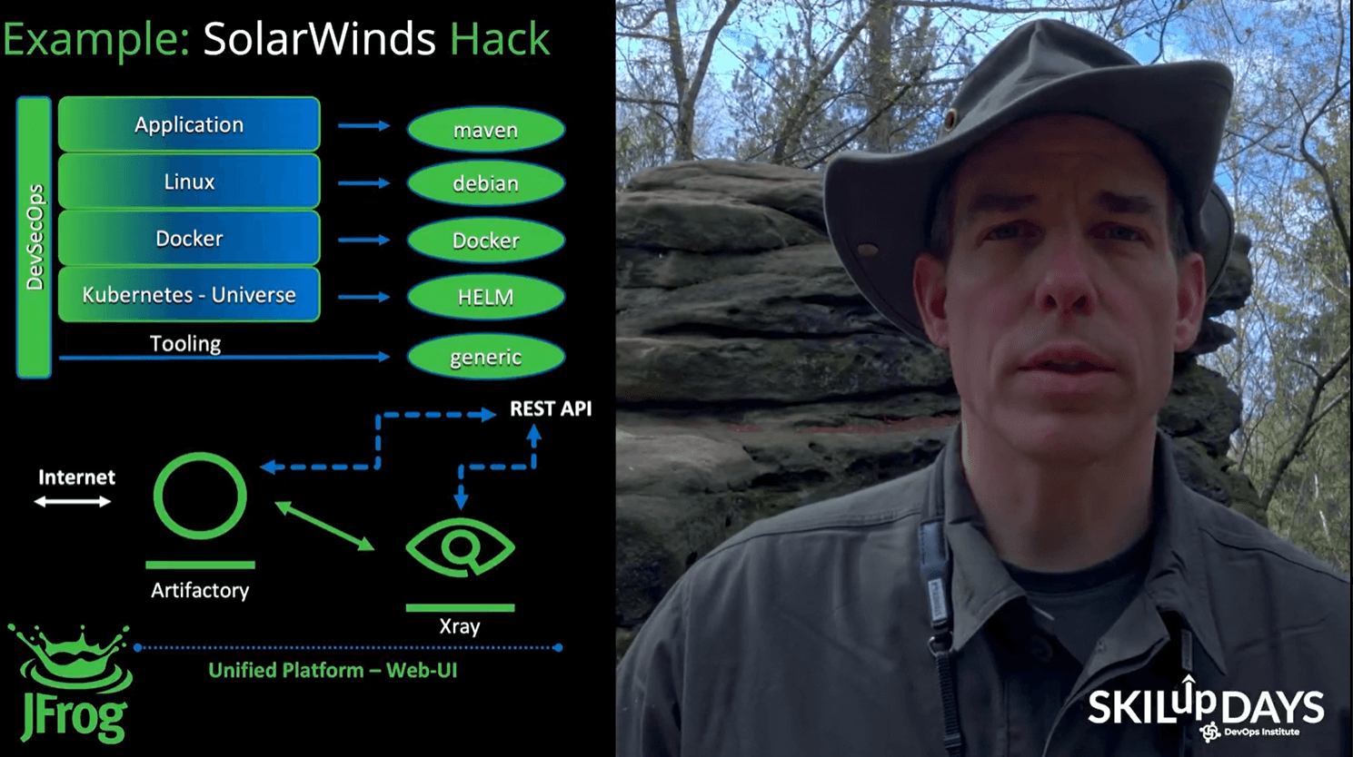 Sven Ruppert of JFrog delivered an impressive session, outdoors, in the forests of Germany: “How SRE fits into the DevSecOps World?” Ruppert explored how SRE and DevSecOps differ, and what each one means. He also shared insight on how security can be established in such a constellation.