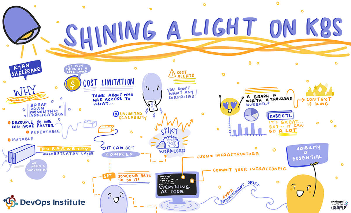 In the session, “Shining a Light on K8s.” DevOps Institute Ambassador, Ryan Sheldrake of Lacework, highlighted how visibility is essential in risk management, as well as the cost limitation and scalability enabled by Kubernetes.