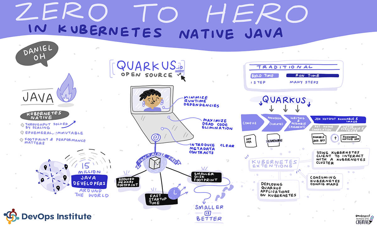 Exploring wow to increase developer productivity and optimize resources utilization on Kubernetes, DevOps Institute Ambassador, Daniel Oh of Red Hat, also explored Kubernetes-Native applications during his session, “From Zero to Hero in Kubernetes Native Java.” In his session, Oh indicated that a big issue for developers is to adopt a new language programming or runtimes over Java due to the lack of compatibility with Kubernetes. He demonstrated how developers could scaffold a Java project from scratch then build it as a Kubernetes-Native application that allows you to have a tiny low memory footprint and milliseconds startup time.